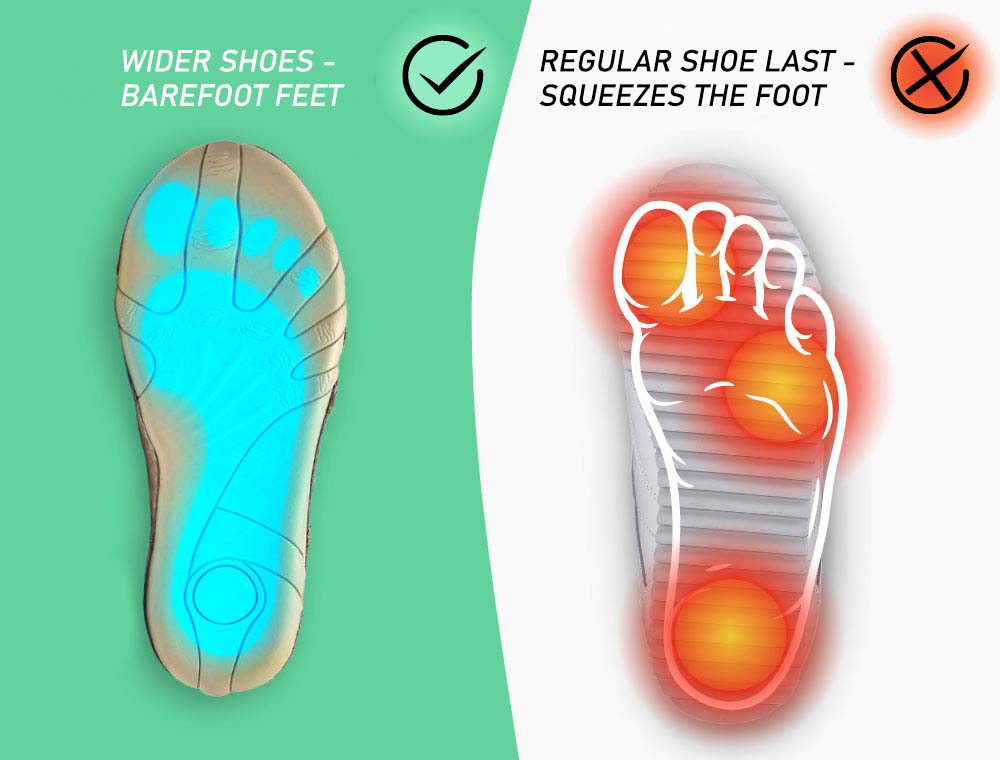 2.Stability and Balance: Wide shoes offer increased stability and balance, especially during rugged outdoor activities. The wider base provides a solid foundation for the foot, reducing the risk of ankle rolling or sprains. This is especially crucial when navigating uneven terrains or challenging trails.